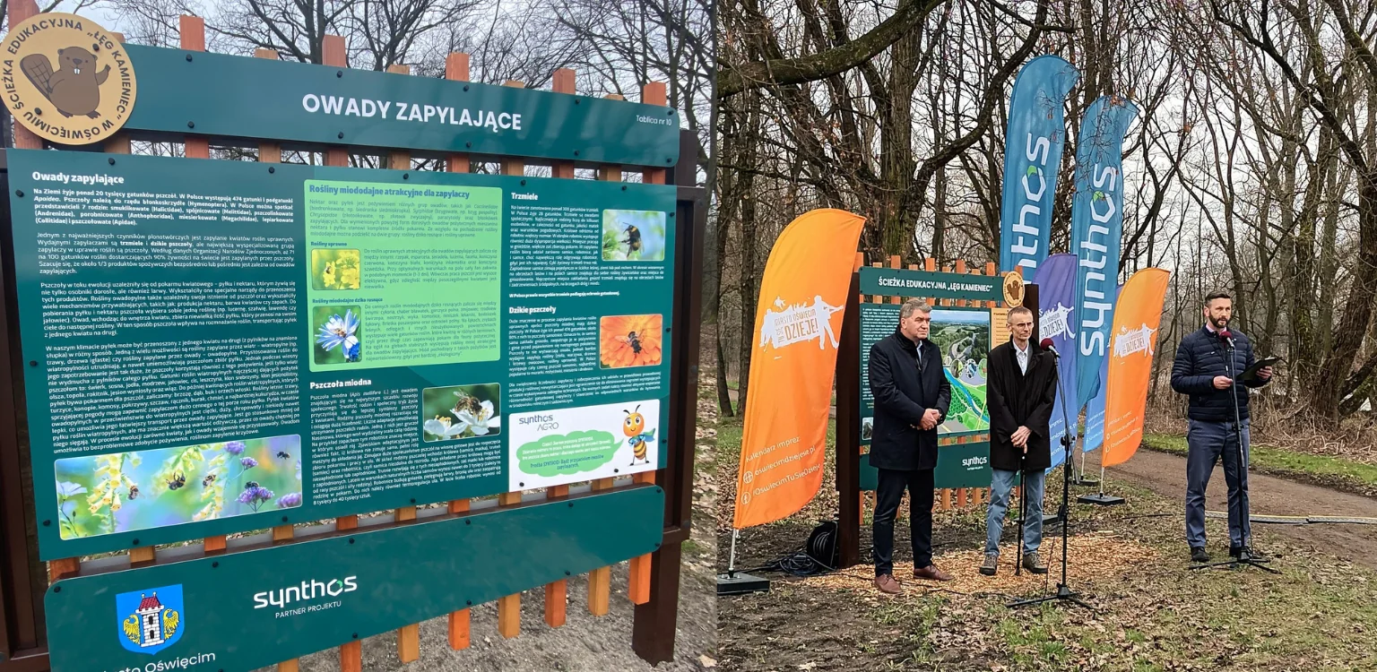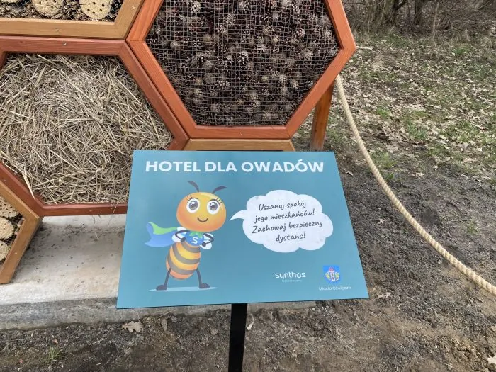Synthos Agro aktywnie uczestniczy w działaniach edukacyjnych dotyczących ochrony pszczół, które są ważnym elementem ekosystemu. Dlatego też, przy ostatniej tablicy edukacyjnej, znajdziecie hotel dla owadów, którego opiekunką i ambasadorką została pszczoła o imieniu Synthosia.